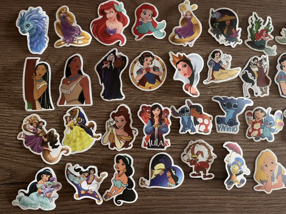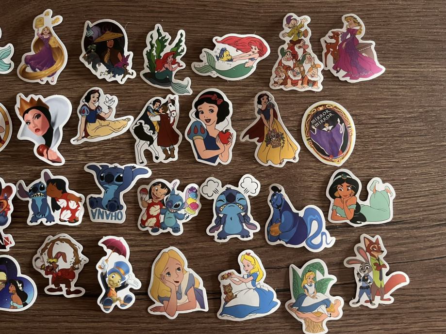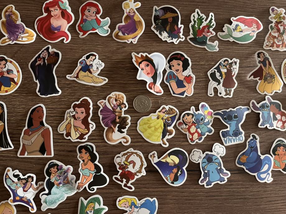 40 naljepnica različitih Disney crtića. Čvršće su, kao vinil pa bi trebale biti vodootporne u nekoj mjeri. Novo. Ubacila sam na zadnju sliku kovanicu od 2 kn radi usporedbe veličine.