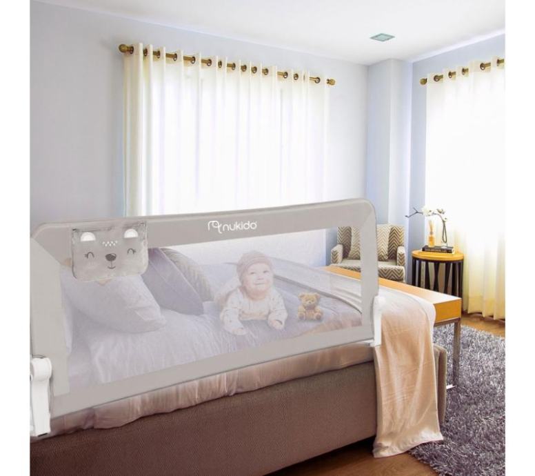 Nukido sigurnosna ograda za krevet eliminira mogućnost ispadanja djeteta iz kreveta. Naš proizvod zadovoljava najstrože europske standarde: