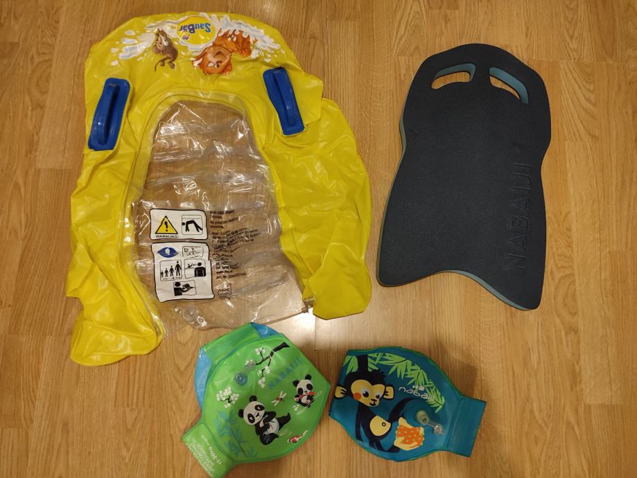 Prodajem opremu za neplivače za bazen i more: 2 para rukavica, 3 daske (s minijaturnim oštećenjima, ali potpuno funkcionalne) i mali luftić s ručkama. Cijena za sve zajedno 7 eura.