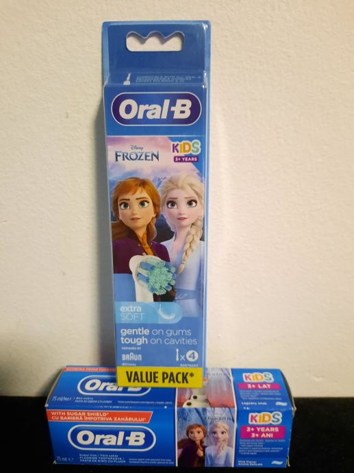 Prodajem novi paket koji sadrzi 4 zamjenske četkice za el. Cetkicu oral b Frozen 3+ godine