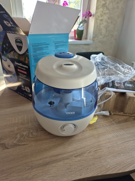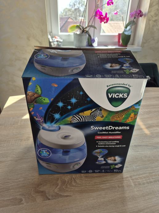 Prodajem ovlaživač prostora Vicks. Korišten nekoliko puta. Stanje kao novo. Mogučnost dodavanja eteričnih ulja. Mogučnost reprodukcijale nekoliko vrsta slika na strop sobe.