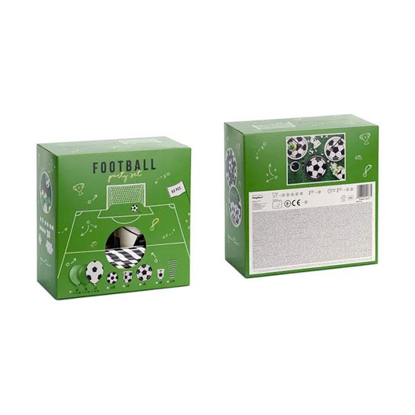 Party set "Football" namijenjen je za proslavu dječjih rođendana. Obradujte vašeg dječaka za rođendan ovim originalnim setom s nogometnim motivima! U setu se nalazi 60 različitih dekorativnih dijelova. Set sadrži: papirnate čaše (6 kom), papirnate tanjure (6 kom), kutije za kokice (6 kom), papirnate salvete (20 kom), papirnate slamke (10 kom) i 12 balona od lateksa (dizajn nogometne lopte - 3 kom, Pastel Emerald Green - 5 kom, Pastel Green - 4 kom). Proizvođač: PartyDeco, Poljska.