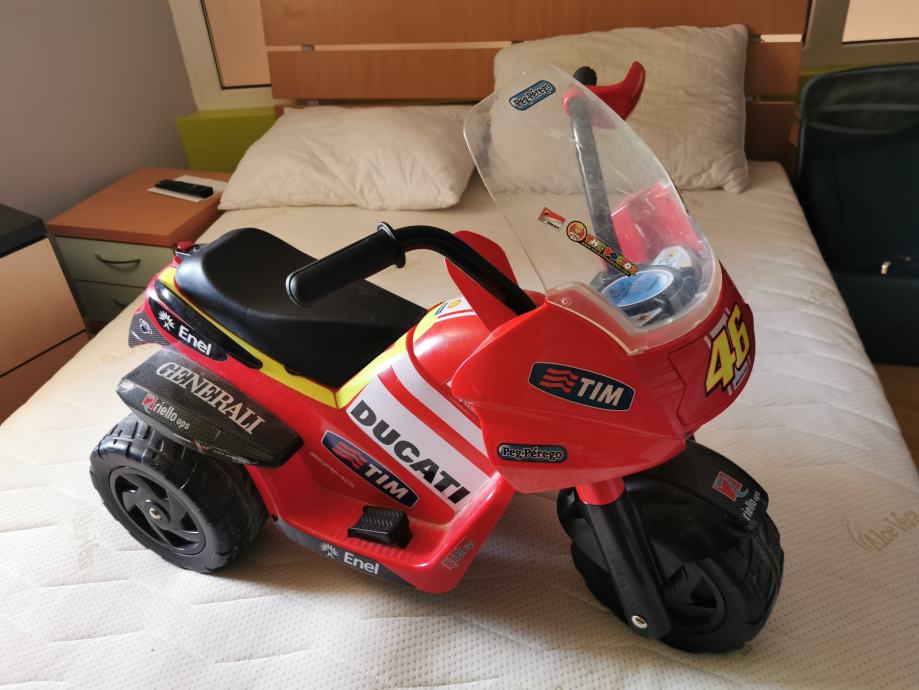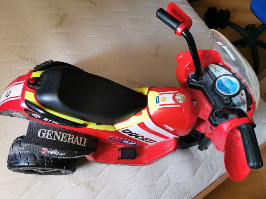 Prodajem dobro ocuvan i malo koristen djecji motor. Placen je u trgovini 2.800,00kn. Utori za staklo su malo osteceni, zato je cijena vrlo povoljna i FIKSNA! Baterija potpuno ispravna!