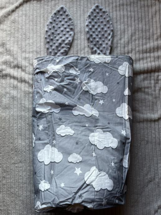 Periva kutija / vreća za igračke zeko , nije korištena. Braid4Baby. Siva vreća s ušima i repićem, s unutrašnje strane s oblaci pa se može preklopiti rub. Visina oko 60 cm, slikala sam dimenzije.