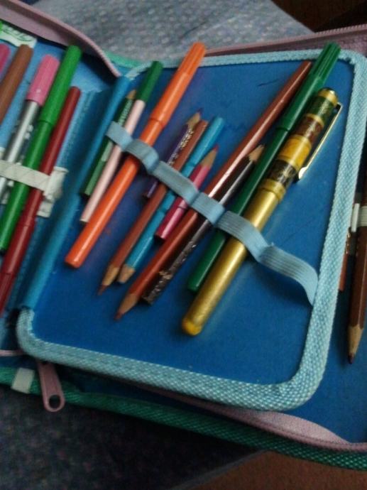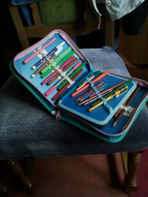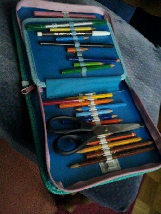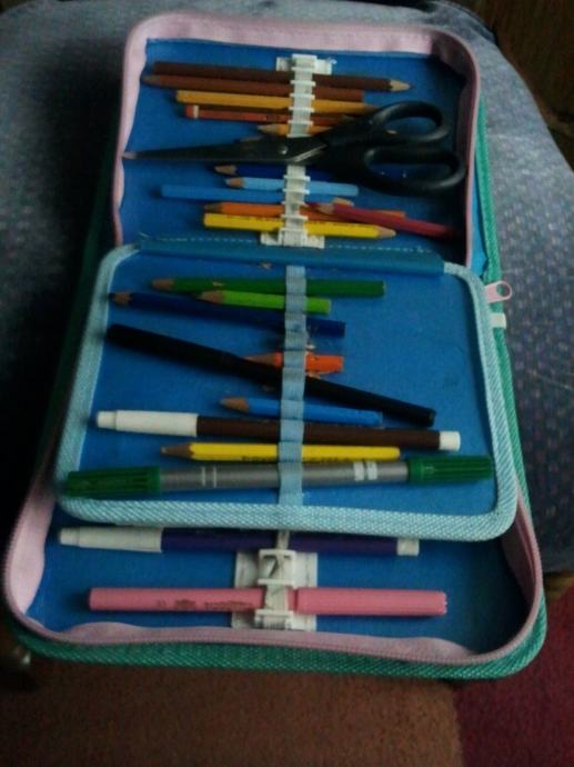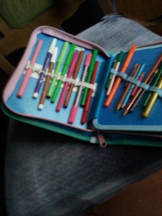 Pernica za školu,kao nova,22cm X 17cm, pojedini flomasteri nerade jer su presušili , sa novim škarama ,vidi slike! mt(sob ivic glav)