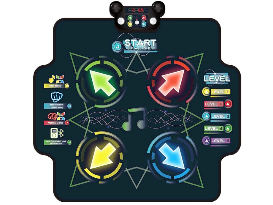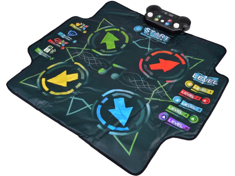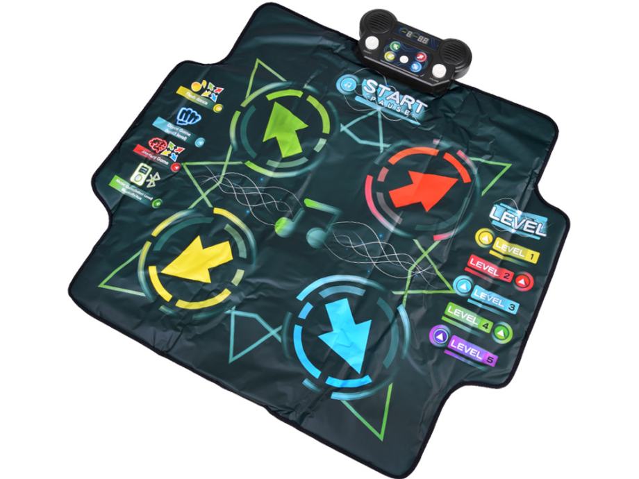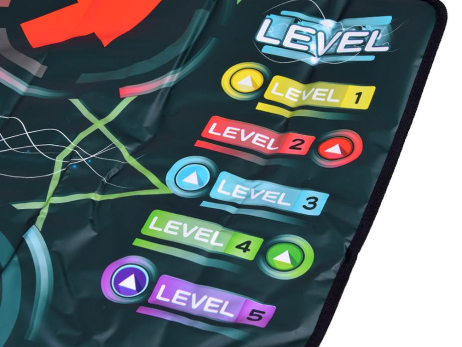 Large Dance Mat izvrstan je izbor za djecu od najranije dobi. Savršen je za igranje kod kuće, na rođendanskim zabavama ili za razne vrste igara i aktivnosti. Za rasklapanje strunjače dovoljna je ravna površina, a nakon igranja lako se može sklopiti čime se štedi prostor. Prostirka ima protuklizni donji sloj koji osigurava sigurnost pri skakanju i plesu. Osmišljen s veselom i kreativnom dječjom igrom i druženjem s obitelji.