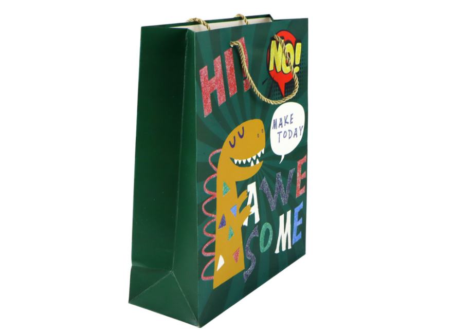 Papirnata poklon vrećica zelena dinosaur 32 cm x 26 cm x 10 cm