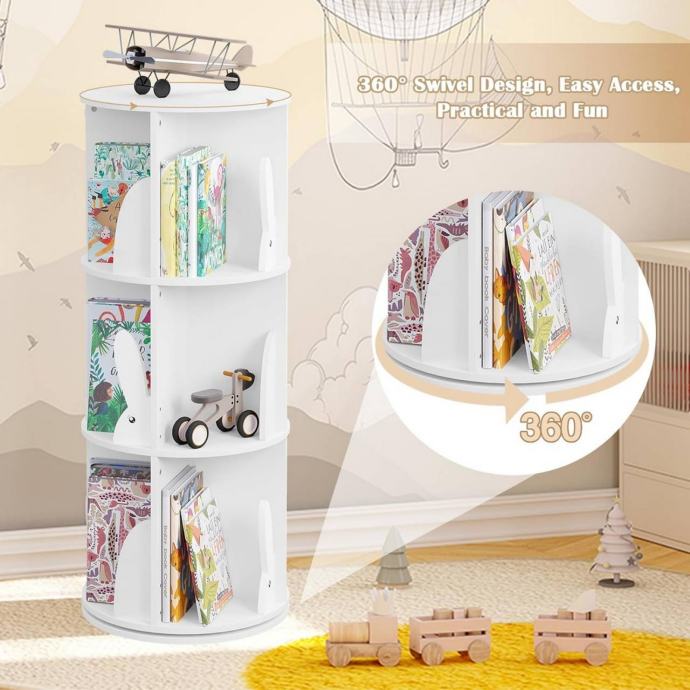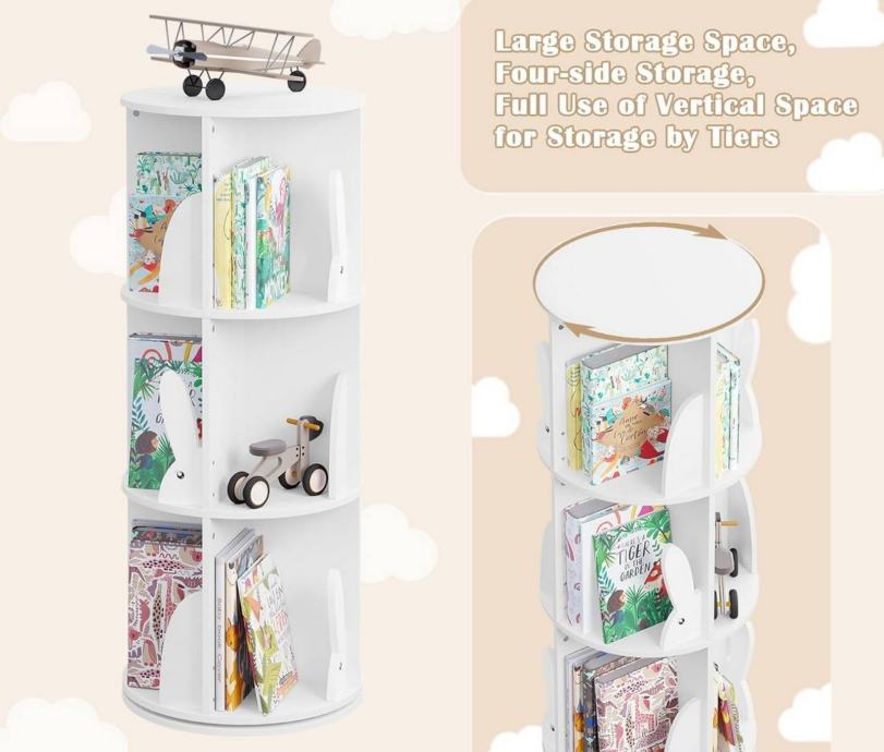 JEDNOSTAVNO SASTAVLJANJE: Zahvaljujući priloženim uputama i priboru, rotirajući stalak za pohranu s utorima i čepovima lako se sastavlja. Kao mala knjižnica, odličan je poklon za djecu.