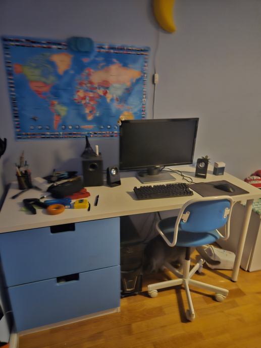 Prodajem odvojeno a moze i skupa, djeciji krevet, ormar, stol, ladicar, i ormar s ladicama. Mjere kreveta su 80x 200 i razvlaci se za jos jedan dodatni krevet. Uz to idu i dva madraca. U ormaru su dvije košare i stap za vješanje robe. Uz pisaci stol idu i ladice sa strane za knjige. Cijenu sam stavila za sve skupa. Odvojeni namjestaj prodajem po dogovoru.