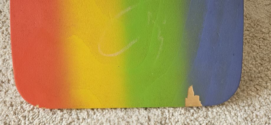 Daska za ravnotežu i ostale vježbe. Otkrhnuta boja na jednom mjestu vidljiva na slici.
