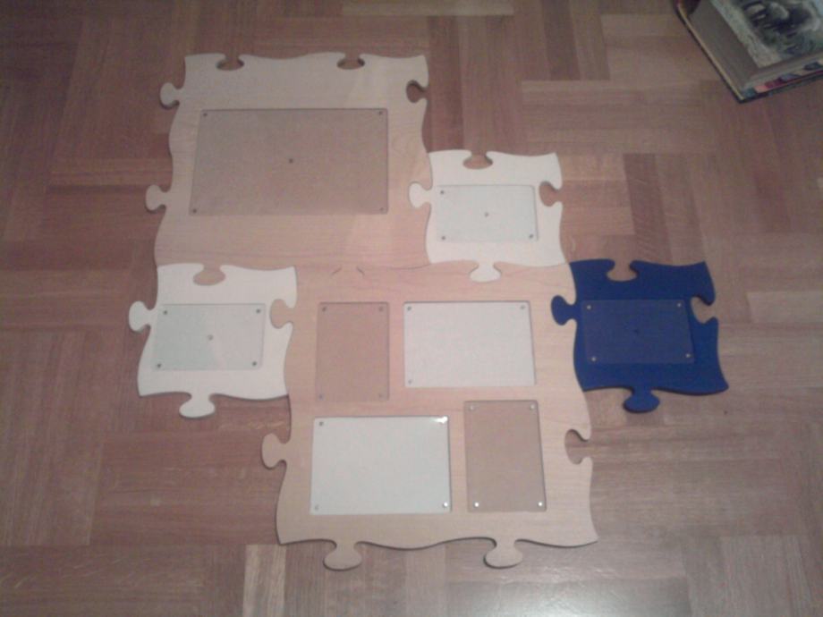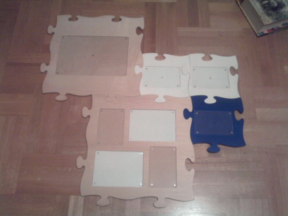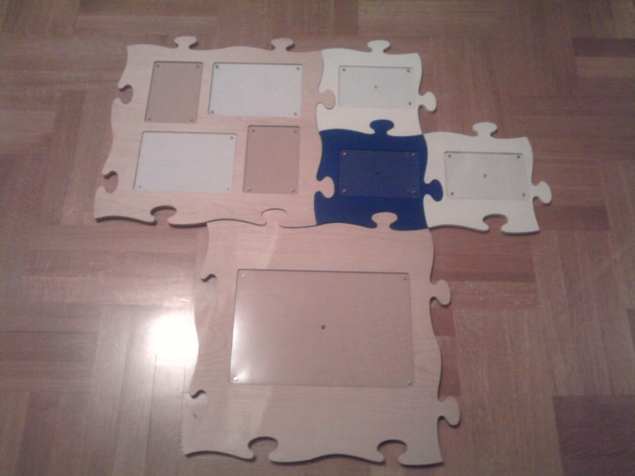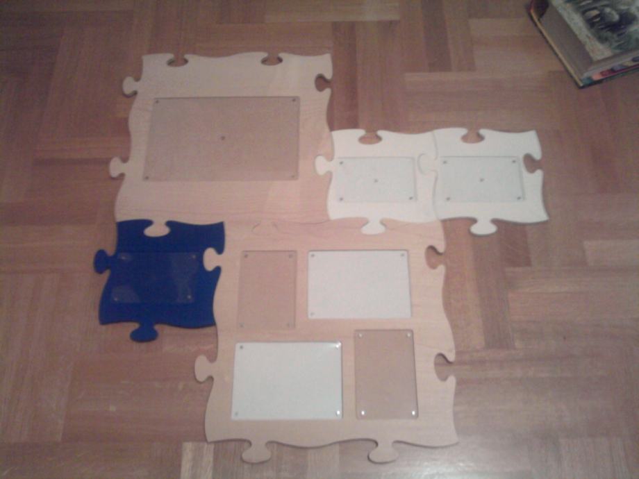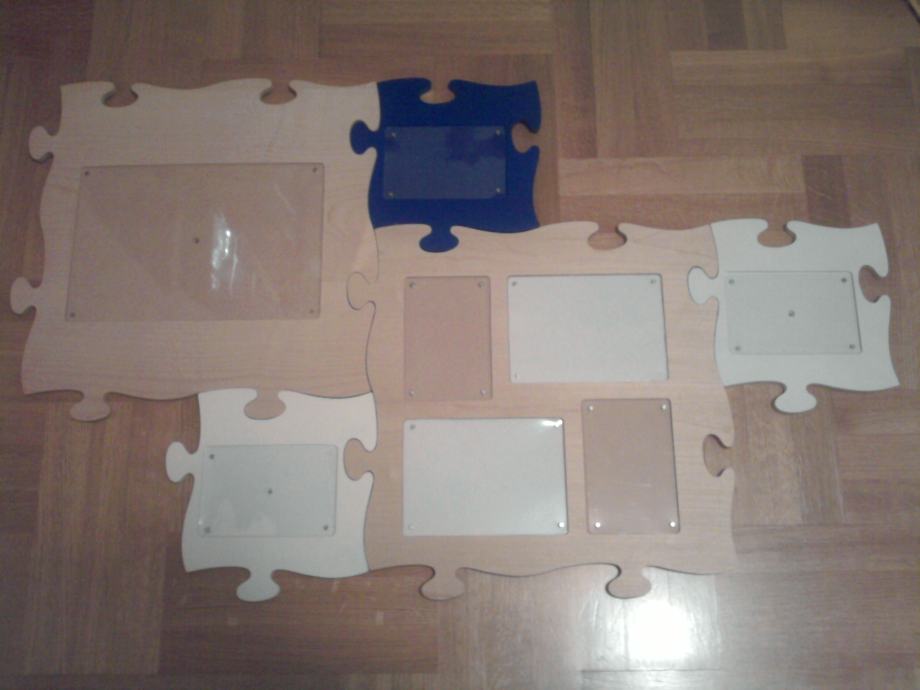 PRODAJEM PUZZLE - DRVENI OKVIR ZA 8 SLIKA RAZLIČITIH VELIČINA KOJE SE MOGU U RAZNIM KOMBINACIJAMA OBJESITI NA ZID...SVI DRVENI, 2 VEĆA OKVIRA U BOJI DRVA, 2 MANJA BIJELE BOJE I JEDAN MALI PLAVE BOJE. SLOŽITI SE MOGU SVI SKUPA ILI SE SVAKI POSEBNO MOŽE OBJESITI NA ZID. STVARA JEDNU PREKRASNU DEKORACIJU NA ZIDU. POTPUNO USČUVANO, KAO NOVO