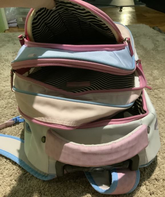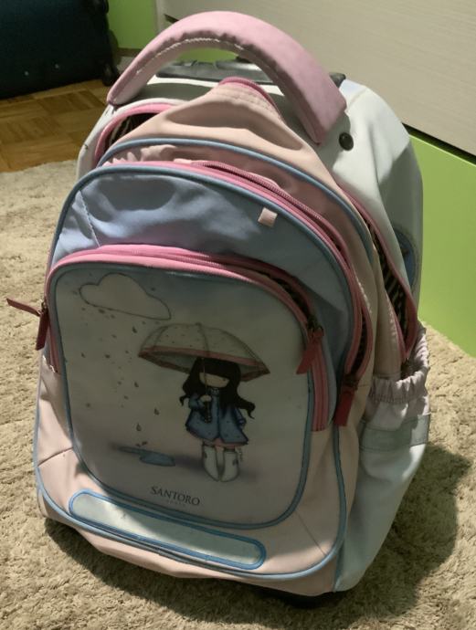 Prodajem odlično očuvan ruksak školski anatomski s kotačićima Puddles of Love Gorjuss