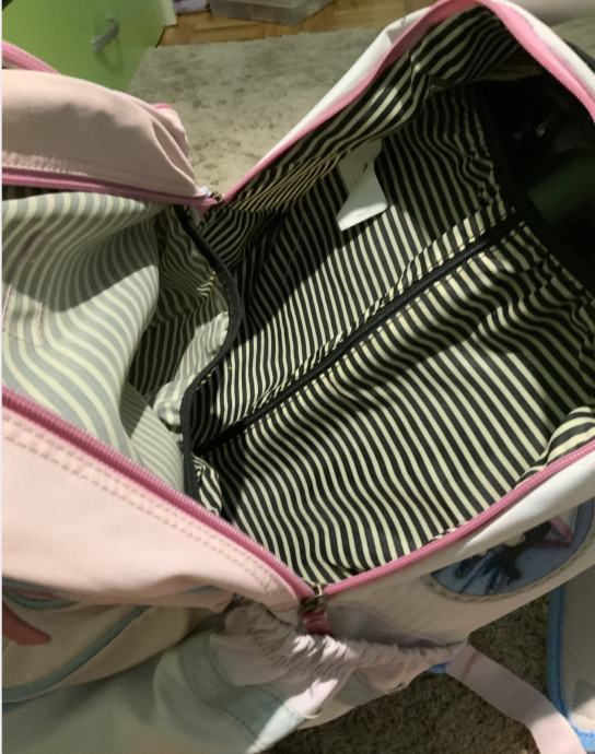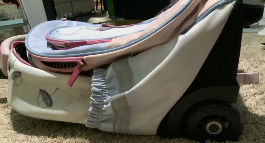 Nošena u školu samo 1 šk. godinu, prvi razred. Dijete torbu nije vuklo po cesti, jer smo ju vozili u školu.