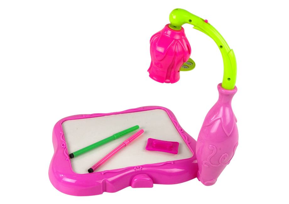 Ružičasti projektor u obliku cvijeta savršena je igračka za sve djevojčice koje vole crtati i slikati. Set ima čak 3 različite funkcije, što je garancija odlične i duge zabave. Pomoću grafoskopa možete kopirati slike s priloženih uzoraka, prikazati ih na zidu i prije svega izraditi vlastita, originalna djela. Set sadrži 21 zanimljivu šaru na tri okrugla diska, šest vodenih markera i spužvicu za brisanje slika.