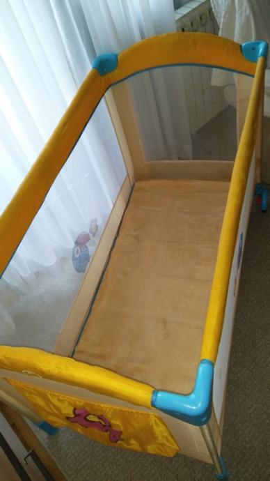 Putni krevetić za djecu, vrlo malo korišten,u odličnom stanju, sa čvrstom podnicom, lako sklopiv i prenosiv u vlastitoj torbi.