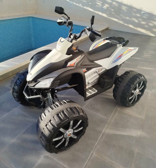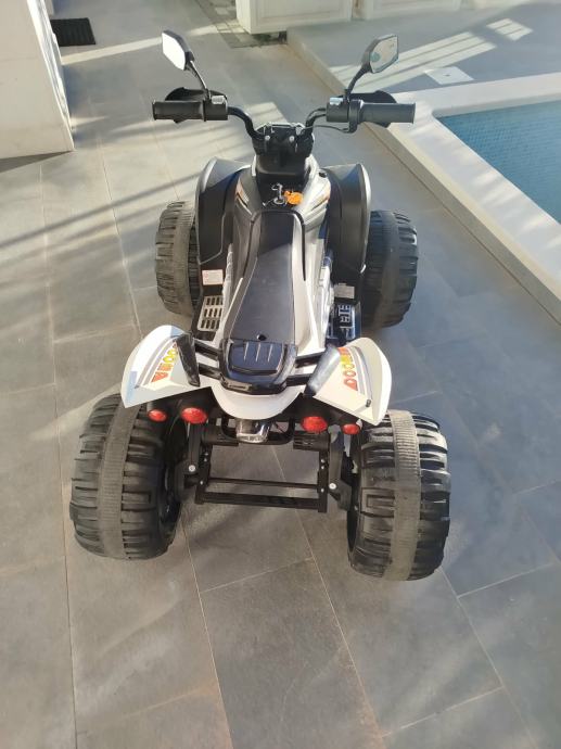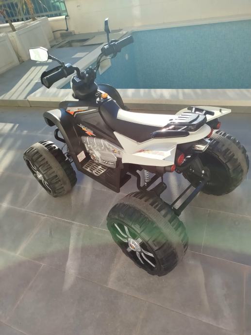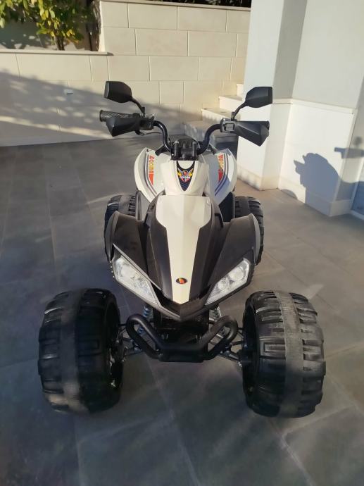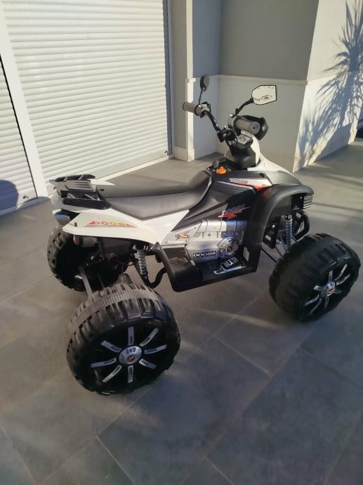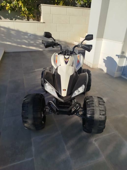 Prodajem dječje terensko vozilo dizajnirano za stariju djecu (iznad 6 godina). Ističe se robusnom konstrukcijom, 24 V sustavom i multimedijskom opremom (audio ploča s podrškom za USB, MP3 itd.), zvučnim i svjetlosnim efektima (led svjetla). Nosivost do 50 kg, pogodan za razne terene. Dimenzije cca 115x65x70 cm. Star 5 godina, ali korišten svega nekoliko puta. Povremeno traži pažnje pri startu zbog kontakta u malom elektronskom sklopu.