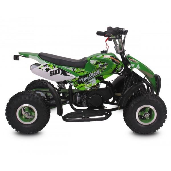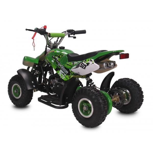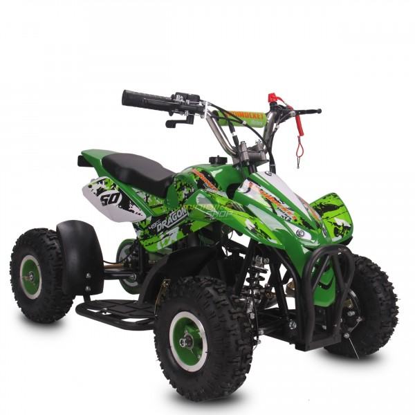 Dječji ATV Dragon u verziji 2 Sport. Osim toga, ovaj model omogućuje podešavanje krutosti amortizera, a ima i mjenjač za bolje stajanje.