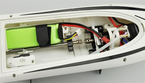 Brod svojom veličinom postiže zadivljujuću maksimalnu brzinu do 45 km / h. Snažna baterija kapaciteta 1800mAh 25C 3S LiPo već je uključena.