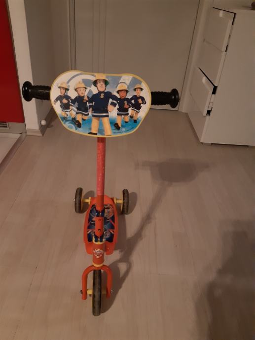 Prodajem romobil smoby na 3 kotaca Vatrogasac Sam u odlicnom stanju. Metalna konstrukcija i podesavanje upravljaca na 2 visine.Cijena 15 eur.