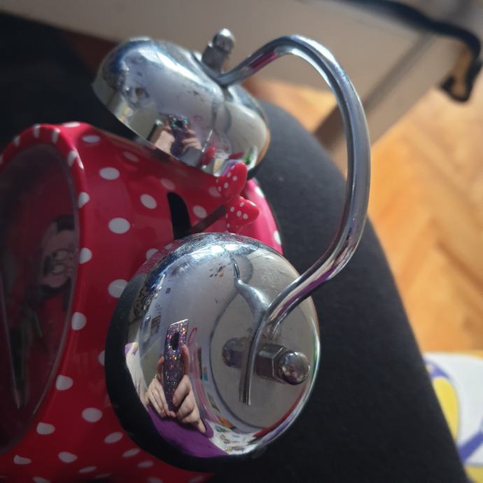Prodajem ispravni sat vekericu koja zvoni klasično ili moze i pjevati razne pjesmice ,na baterije.Staklo plastično napuklo u koferu ali ne smeta ,funkcionira jer nije do kraja puknuto ,kupljena u Disneylandu u Parizu.5€