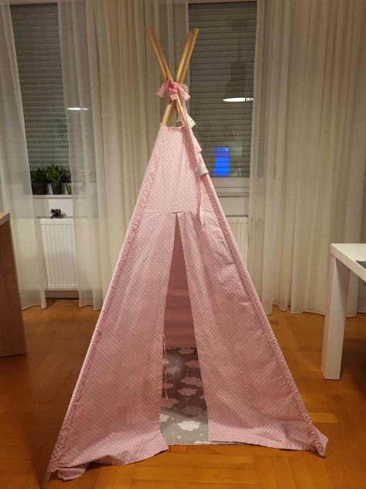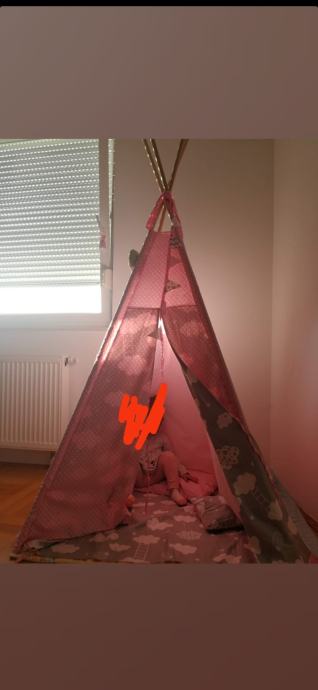 Djecji sator u super stanju, visina 170 cm, sirina 120 cm, sa podlogom. S obzirom na dimenzije drzaca moguce samo osobno preuzimanje (Novi Zagreb Odra)