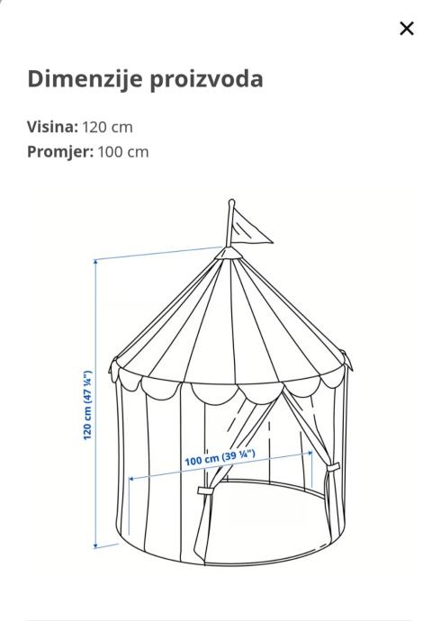 Šator IKEA Cirkustallt dječji, visina 120 cm, promjer 100 cm.