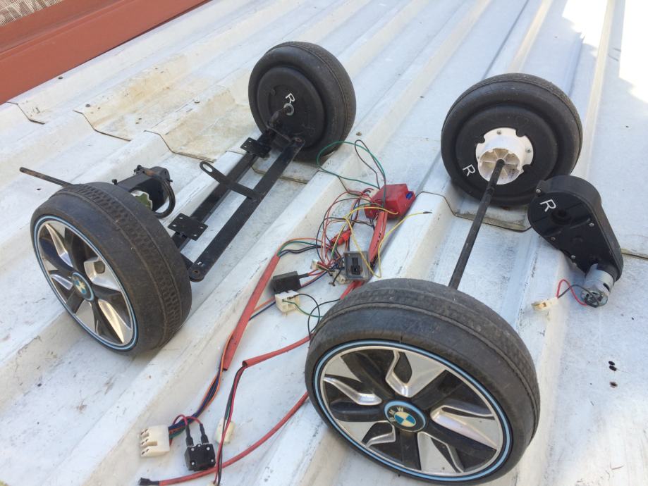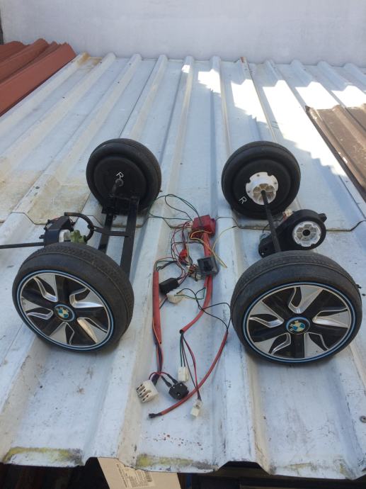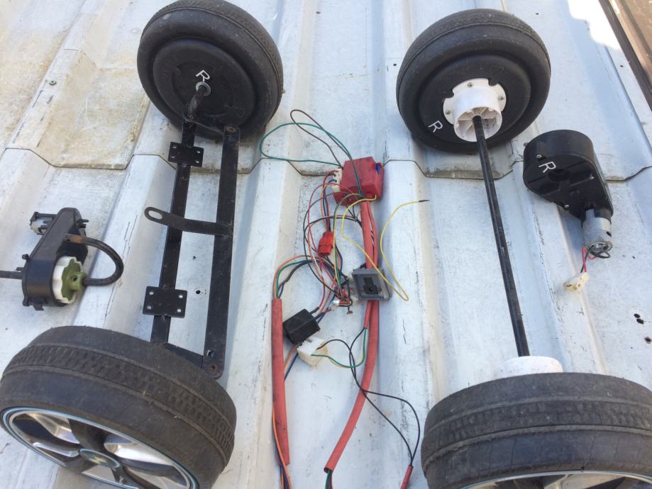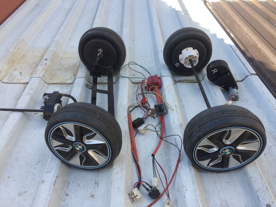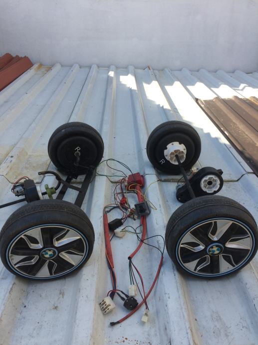 Povoljno prodajem set kotača i ispravnih pogonskih motora 12V s kablovima
