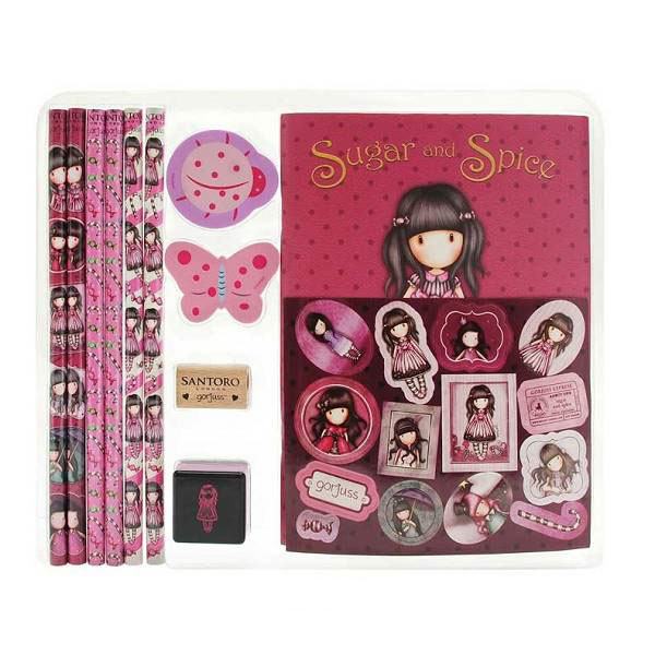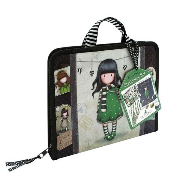 Set za pisanje u praktičnoj torbici sa ručkama koja se otvara/zatvara pomoću zip zatvarača. Set sadrži teku sa 36 listova, 6 grafitnih HB olovaka, šiljilo, 2 gumice, naljepnice i žig. Dimenzije: 23.7x19.4x3 cm.