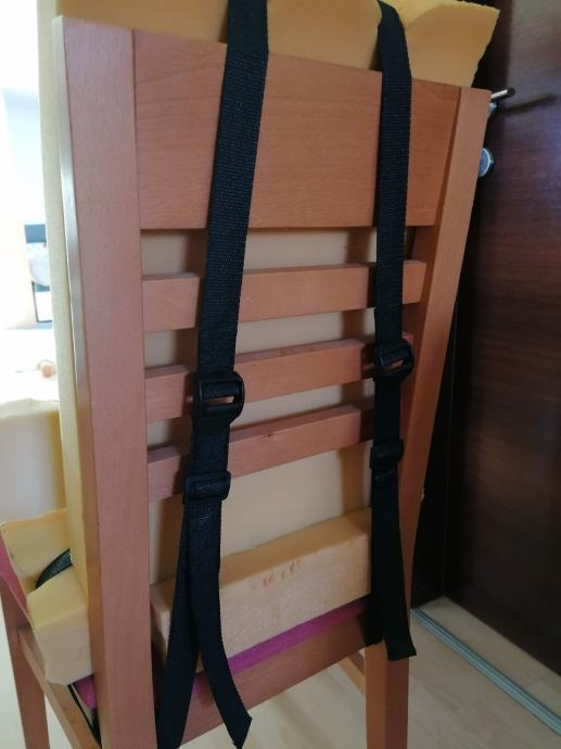 Prodajemo očuvano sjedalo za djecu koje se može montirati na stolac kao na slikama, ili u automobil kao pomočna sjedalica.