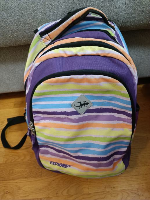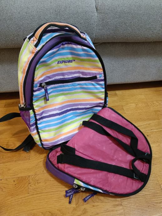 Školska torba kvalitetne marke EXPLORE, sa anatomski podstavljenim leđima za udobnost kod nošenja teških knjiga.