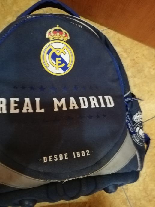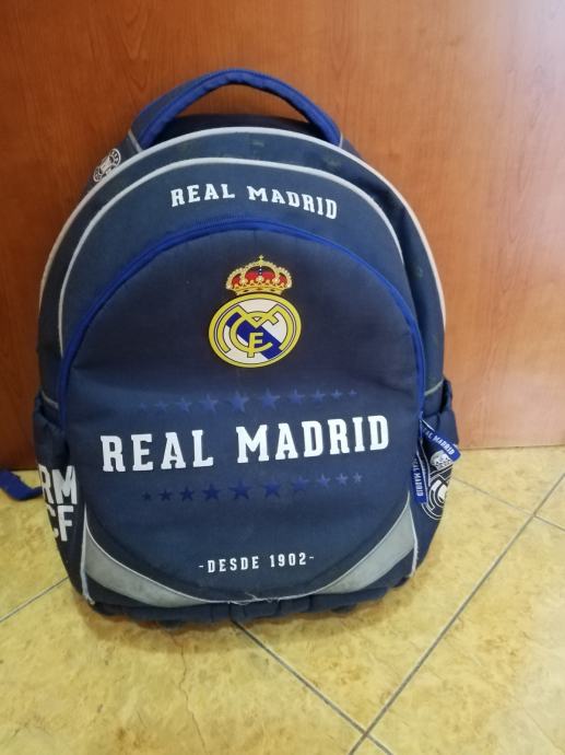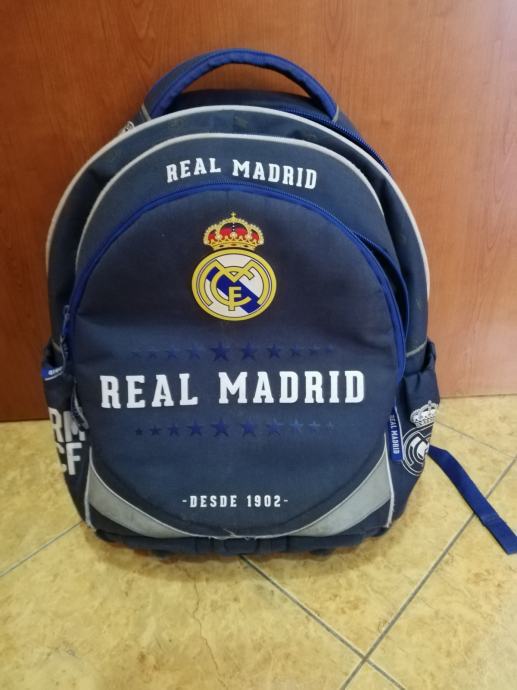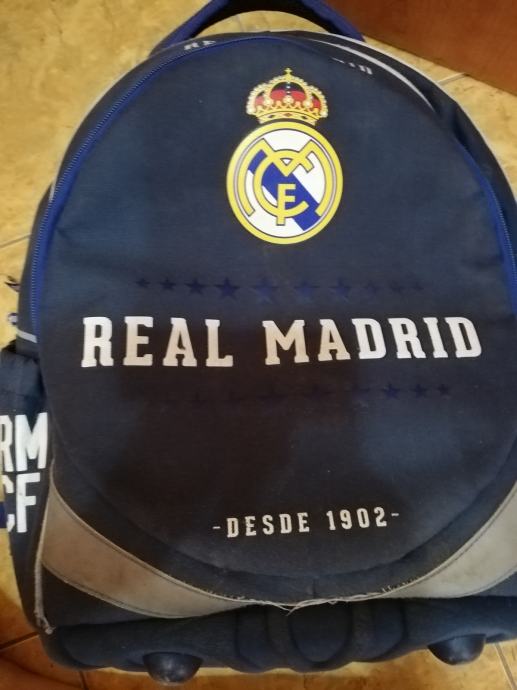ŠKOLSKA TORBA, PLAVA, REAL MADRID + PRIPADAJUĆA PERNICA, U DOBROM STANJU.