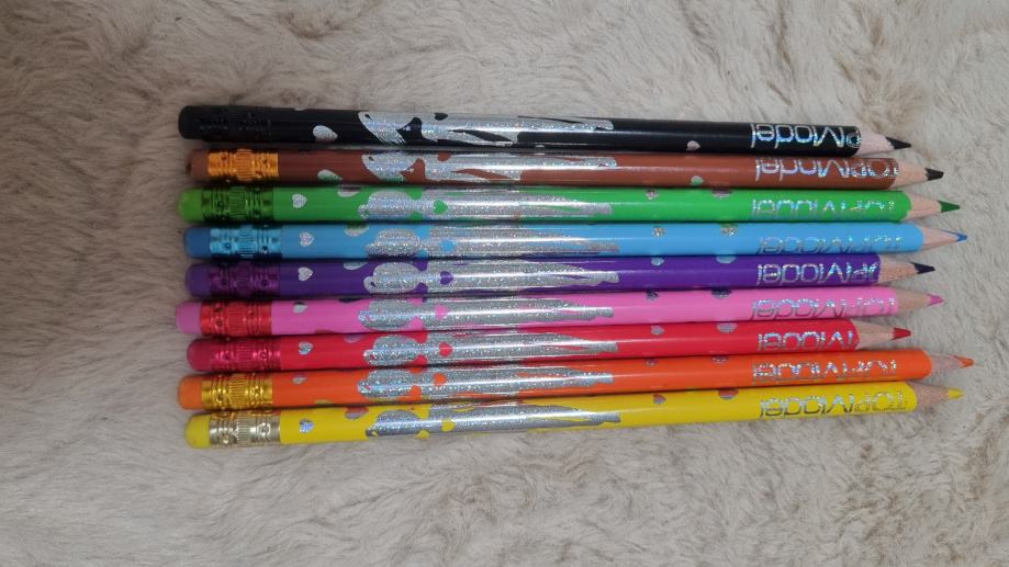 Cijena seta: 19,99e (sadrži: topmodel plavu parnice na 3 kata(dolazi s priborom koji se nalazi u njoj na slici) , topmodel tirkiznu pernicu na jednoroga i vilu, topmodel torbicu za ruku,topmodel bojanku na psiće, topmodel bojce,topmodel flomiće sa tankom i debelom stranom i multi-color topmodel kemijska.)