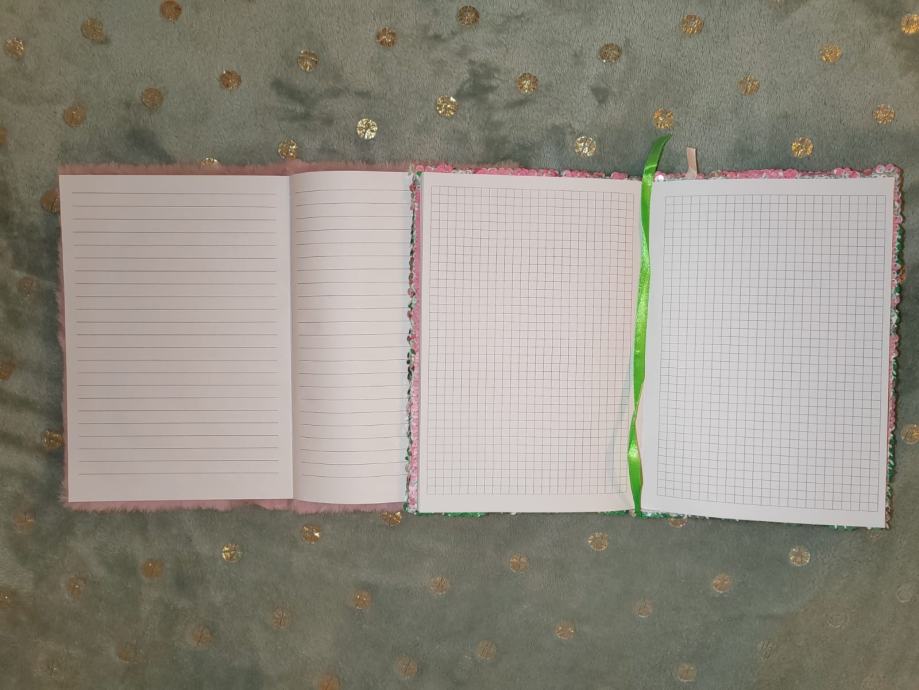 Notes - bilježnica (s reverzibilnim šljokicama na kockice, s krznom na crte) - 3,50 Eura