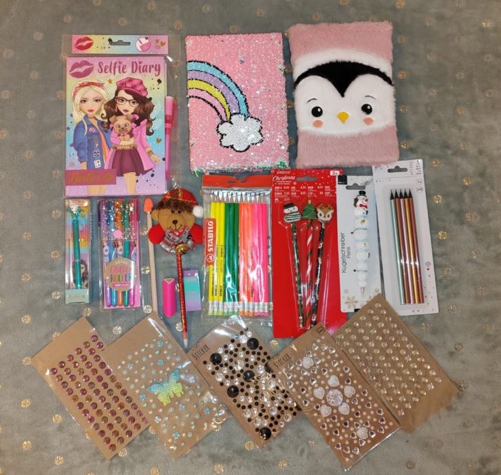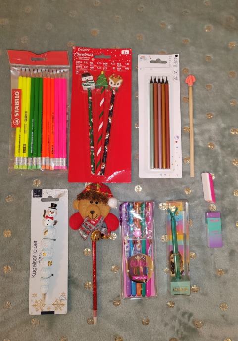 Školski pribor-notes,drvene i kemijske olovke, gumice, stickersi, NOVO