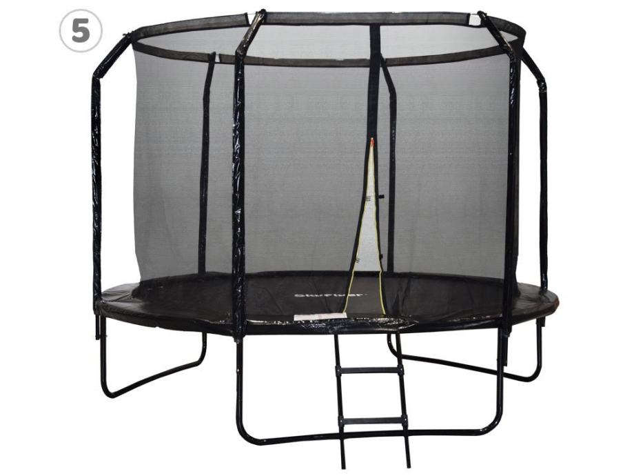 - cijevi mreže pričvršćene su na noge trampolina sa snažnim vijcima
