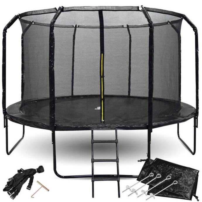 Vrtni trampolin SkyFlyer Black 366 cm s mrežom i profiliranim stupovima prijedlog je za sve one koji vole i cijene dobro kretanje. Opće je poznato da je vježbanje zdravlje, endorfini, pozitivan stav – sve je to dobro. Zato je takav trampolin u vlastitom vrtu fantastičan motivator za pokretanje vlastitog tijela! Nemate što čekati - ova odskočna daska omogućit će vama i vašoj djeci da budete u izvrsnoj formi i formi.