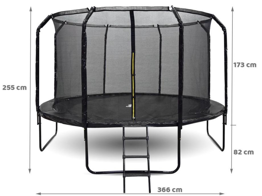 Veličina trampolina od 366 cm bit će savršena čak i za četvero ili petero djece. Takav trampolin bit će siguran, zahtijeva malo slobodnog prostora u vrtu, ali vjerojatno ćete saznati koliko je zabavan. Mjesto za trampolin mora biti ravno, bez drveća, grana iznad trampolina. Dovoljno je označiti prostor predviđen za trampolin uz metro kako biste vizualno zamislili prostor koji će oprema zauzeti. Glavno pravilo je da što je veća veličina, to je veći prostor za skakanje :).