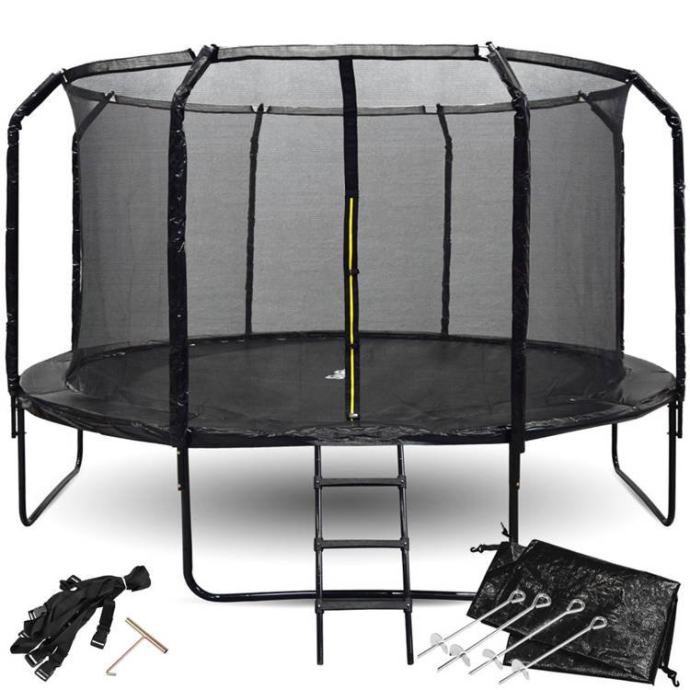 Vrtni trampolin SkyFlyer Black 426 cm s mrežom i profiliranim stupovima ponuda je za sve one koji vole i cijene dobro kretanje. Opće je poznato da je vježbanje zdravlje, endorfini, pozitivan stav – sve je to dobro. Zato je takav trampolin u vlastitom vrtu fantastičan motivator za pokretanje vlastitog tijela! Nemate što čekati - ova odskočna daska omogućit će vama i vašoj djeci da budete u izvrsnoj formi i formi.