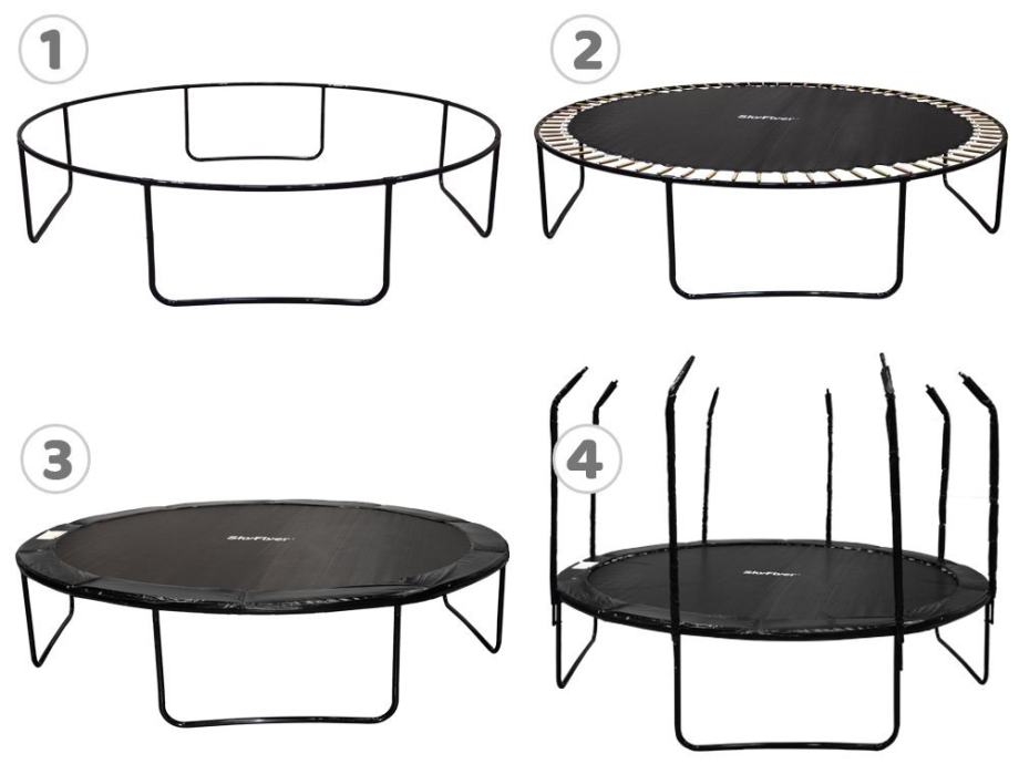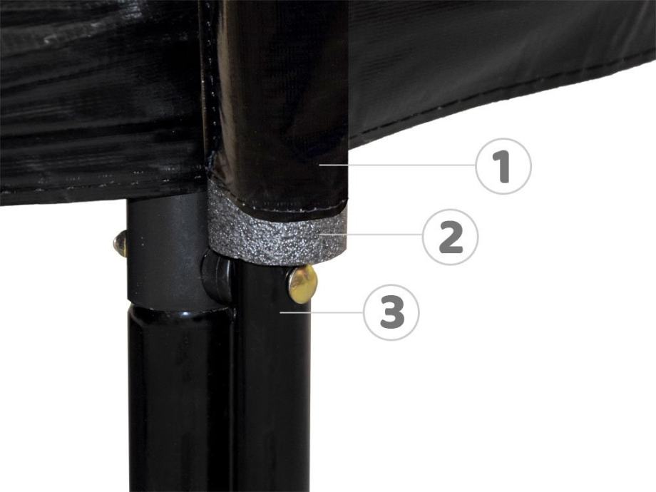 - cijevi mreže pričvršćene su na noge trampolina sa snažnim vijcima