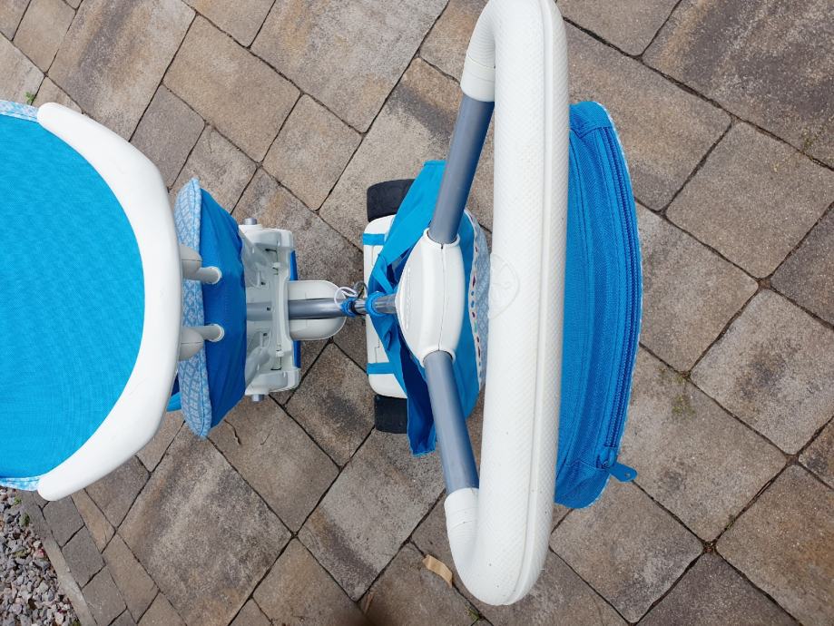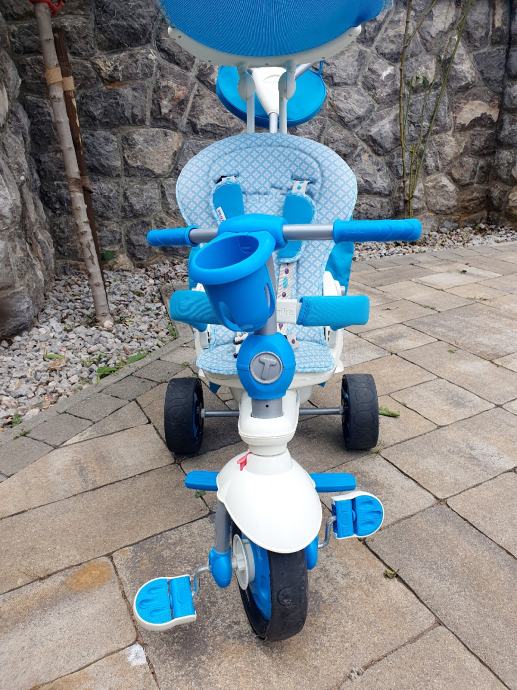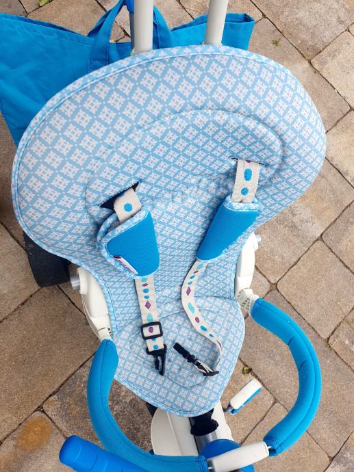 Tricikl ima podstavljeno sjedalo s prilagodljivim naslonom i podstavljene sigurnosne pojaseve, zaštitnu ogradicu, krović sa UV zaštitom, malu torbu na ručki roditeljskog upravljača i veću ispod roditeljskog upravljača, plastičnu košaricu, sklopive oslonce za noge, sklopiva protuklizna pedala, amortizer na prednjem kotaču, mogućnost postavljanja praznog hoda i nastavak za bočicu. Gumb na prednjem kotaču omogućava transformaciju tricikla iz tricikla kojim upravlja roditelj u tricikl kojim upravlja dijete.