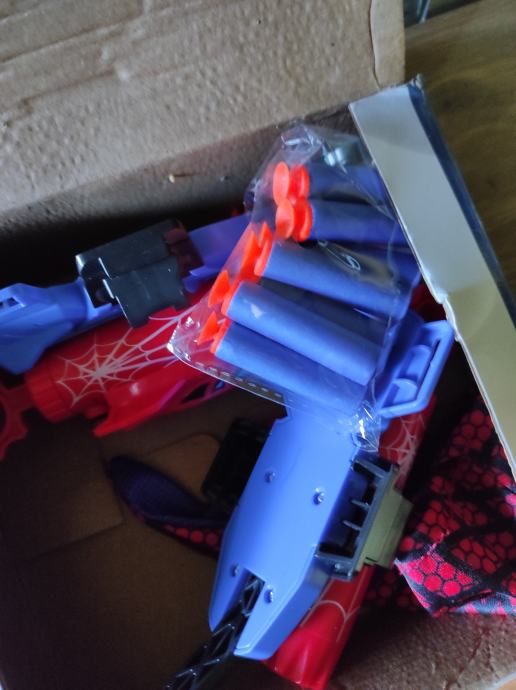 Potpuno novi set sa dva pištolja koji se učvrste na rukavice Spiderman te ispaljuju strelice.Set je potpuno novi u kutiji ,zapakiran i ceka kupca , idealan poklon za dijete koje voli Spidermana.Za sve informacije nazovite na broj 097-6601365 ili pošaljite upit na Viber ili Njuskalo, a Šaljem Poštom ili Tiskom ili u dogovoru sa kupcem, stanje NOVO,Vidi slike!!