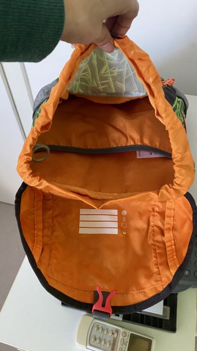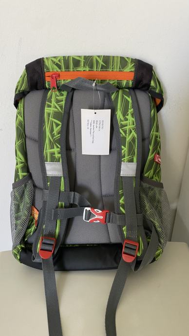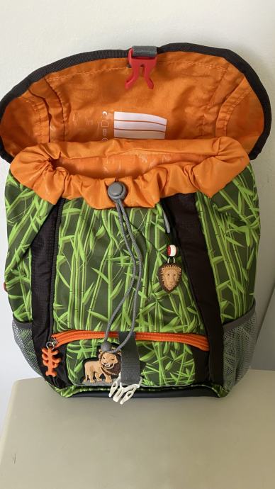 Ima jedan veliki glavni pretinac i 2 manja pretinca na patent. Sa svake strane su mrežasti pretinci za npr. bocu, podesive i podebljane naramenice, jastuk za sjedenje, magnet na temu lav.