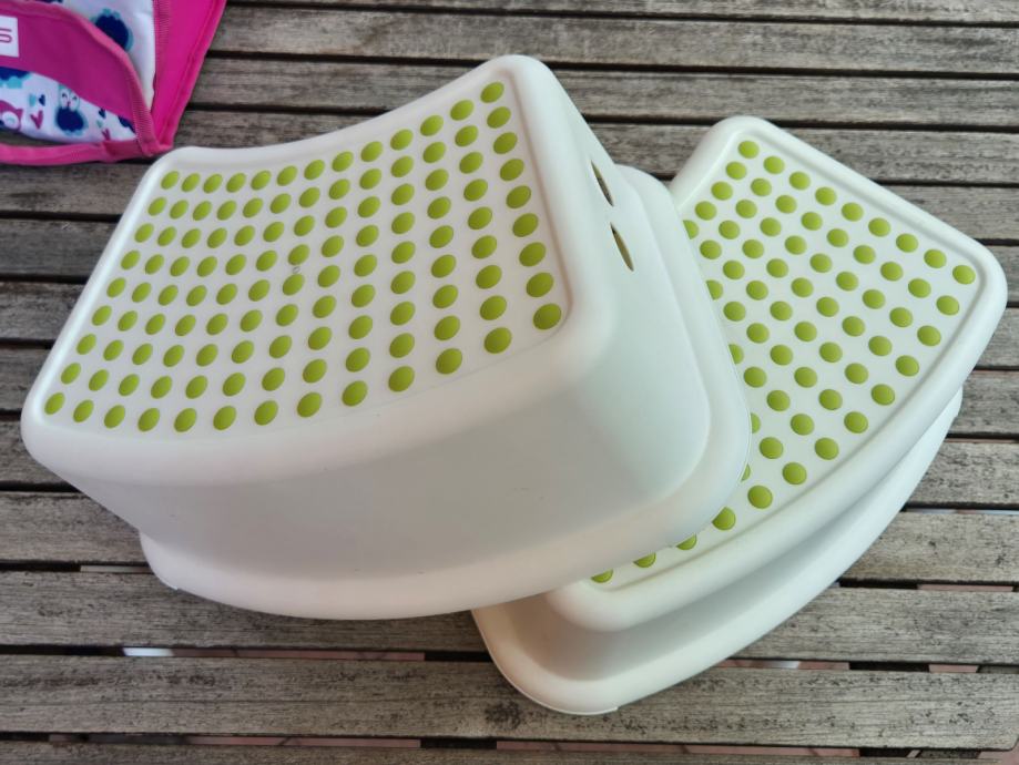 Stabilna, neklizajuća stepenica bijele boje savršena je da djeca uz pomoć nje sigurno mogu dohvatiti stvari s više police, gledati se u ogledalo dok peru zube, ili sami ići na wc. Dvije stepenice, malo korištene i odlično očuvane.