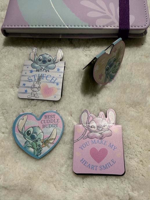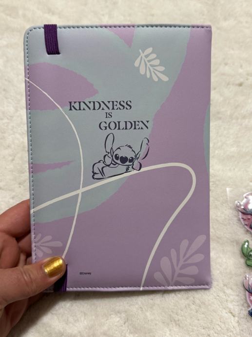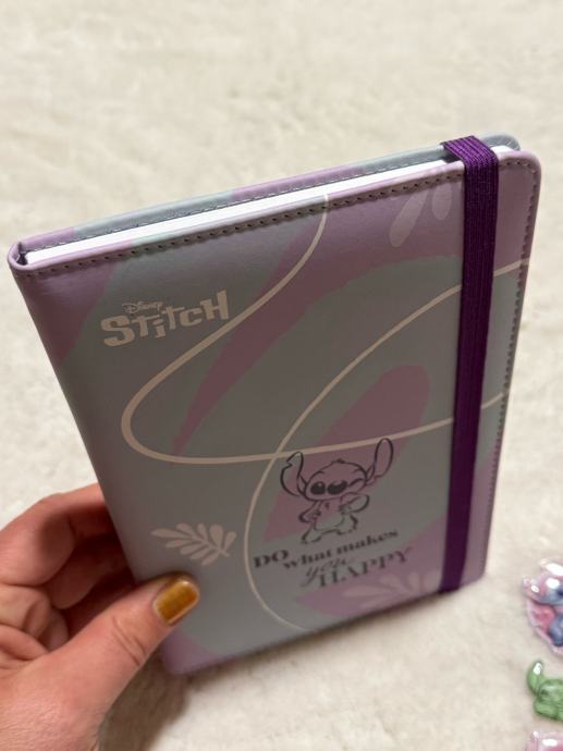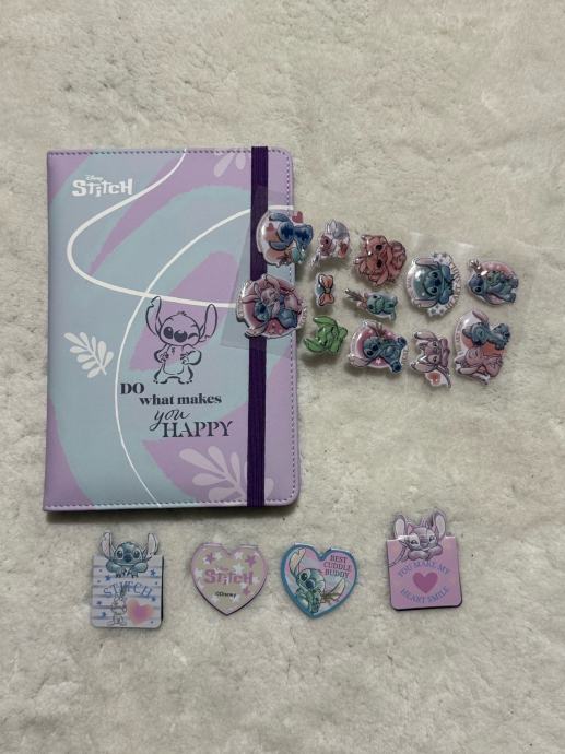 Disney Stitch notes A5, nekorišten i uz njega naljepnice i označivači za knjige na magnet.