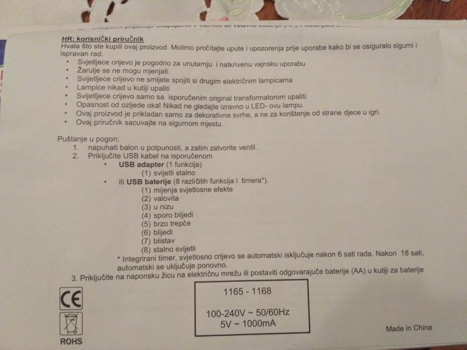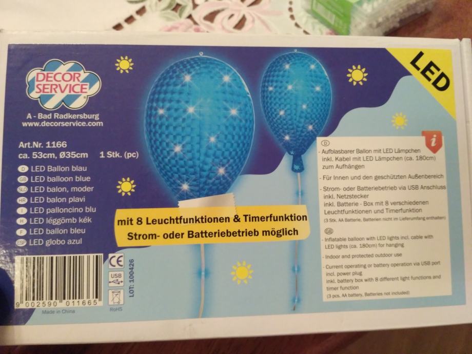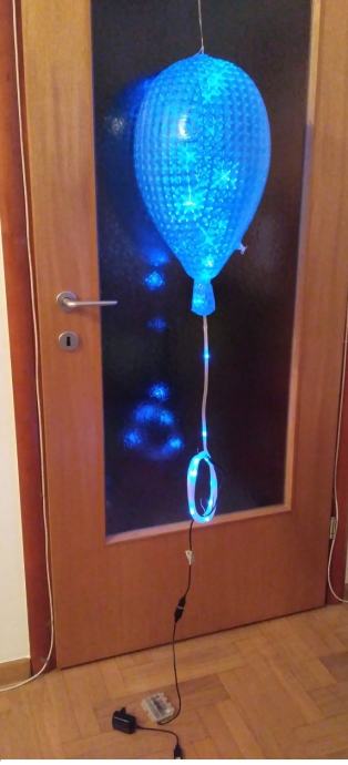 Balon ima kukicu na vrhu i mogućnost da se objesi i svijetleći kabal.