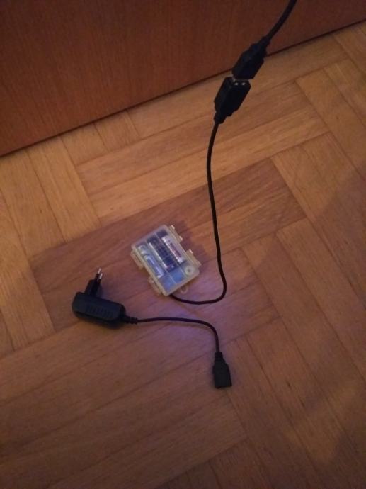 Napajanje može preko baterija (vodonepropusna kutija od baterija) , preko punjača na 220v i preko USB-a (na kompjuter).