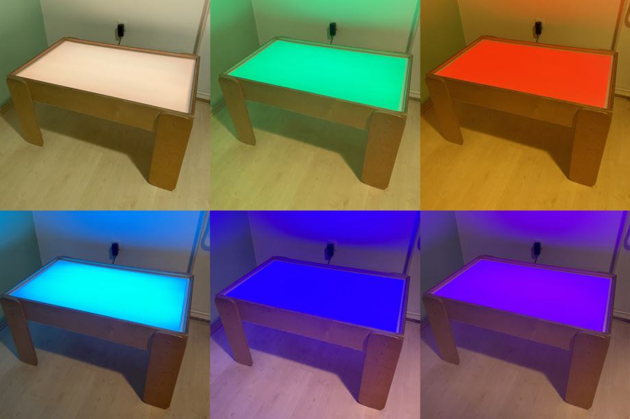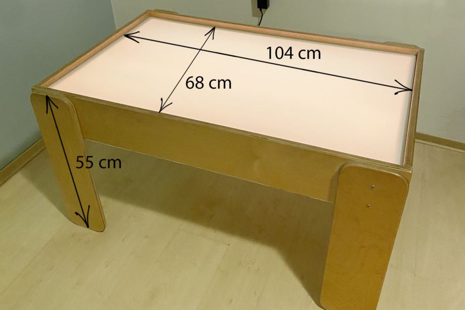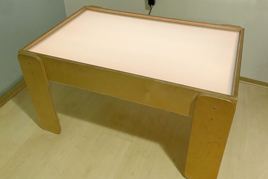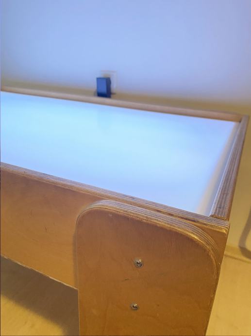 Svjetleći stol za igru i istraživanje, promatranje transparentnosti raznih materijala, miješanje boja folijama, preslikavanje crteža. Sa stolom dolazi daljinski za mijenjanje boja.