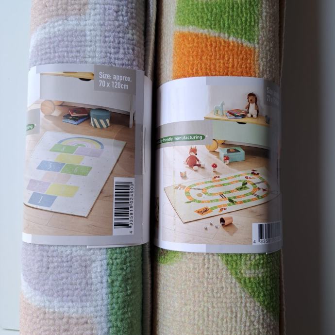 Dva nova, neraspakirana tepiha za dječju sobu dimenzije 70x120cm s protukliznom donjom stranom.