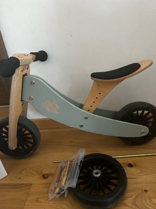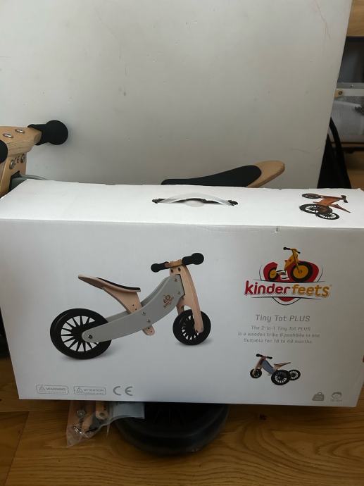 Prodajem Kinderfeets Tiny Tot PLUS drveni balans bicikl. Radi se o modelu koji se može koristiti kao tricikl ili kao balans bicikl bez pedala, što ga čini prilagodljivim različitim fazama razvoja djeteta. Okvir je izrađen od drva u kombinaciji s crnim kotačima. Dolazi s originalnom kutijom.