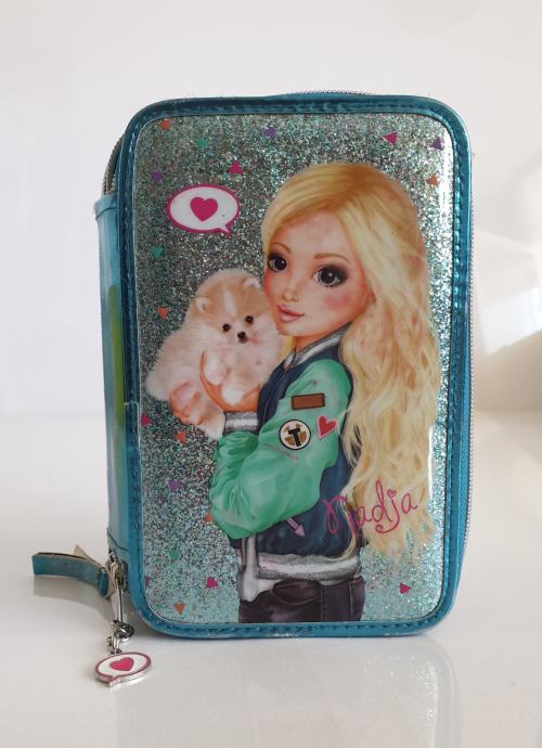 Prekrasna svjetlucava pernica Top model, malo koristena, jedno polugodiste uz jos nekoliko drugih pernica. Najveci model, na tri zasebna kata.